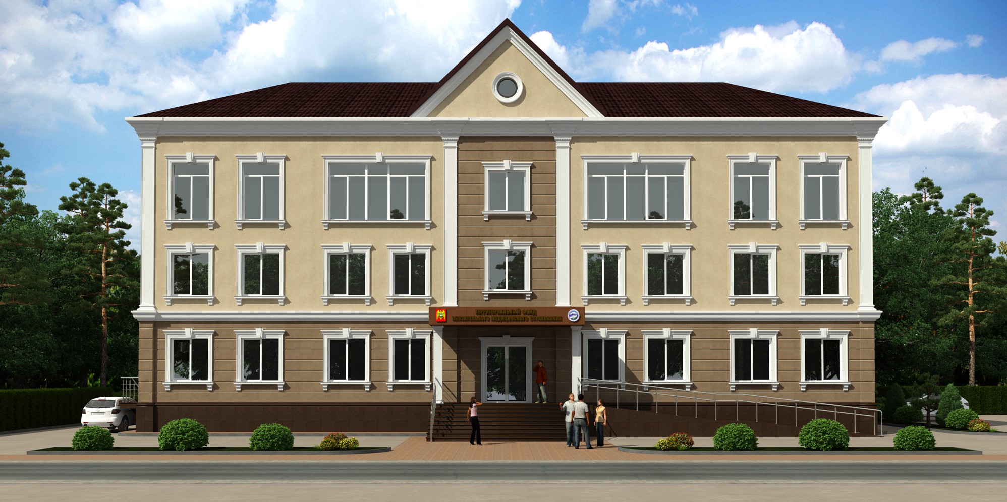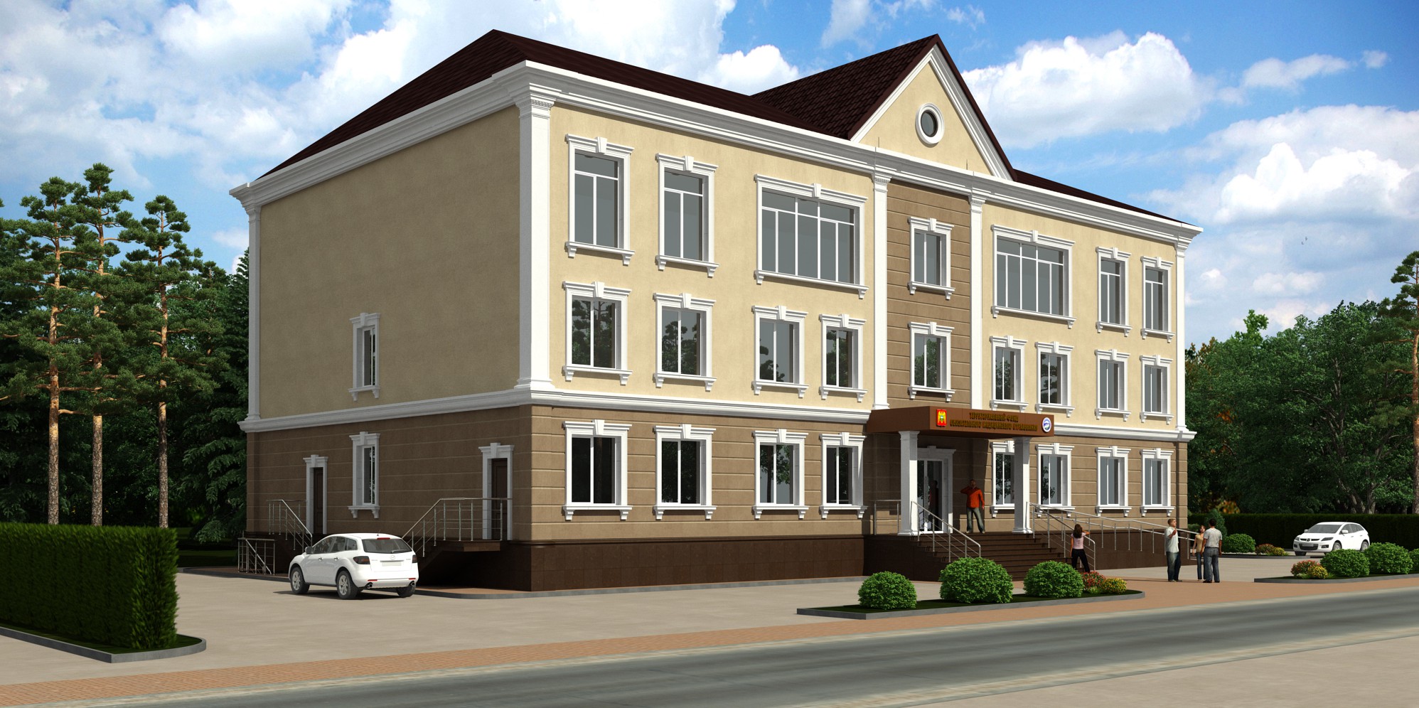 В подвальном этаже запроектирован паркинг на 10 маш. /мест. На 1-3 этажах запроектированы кабинеты сотрудников, кабинеты для приема граждан. Также на 3 этаже расположен конференц – зал и актовый зал на 60 человек.