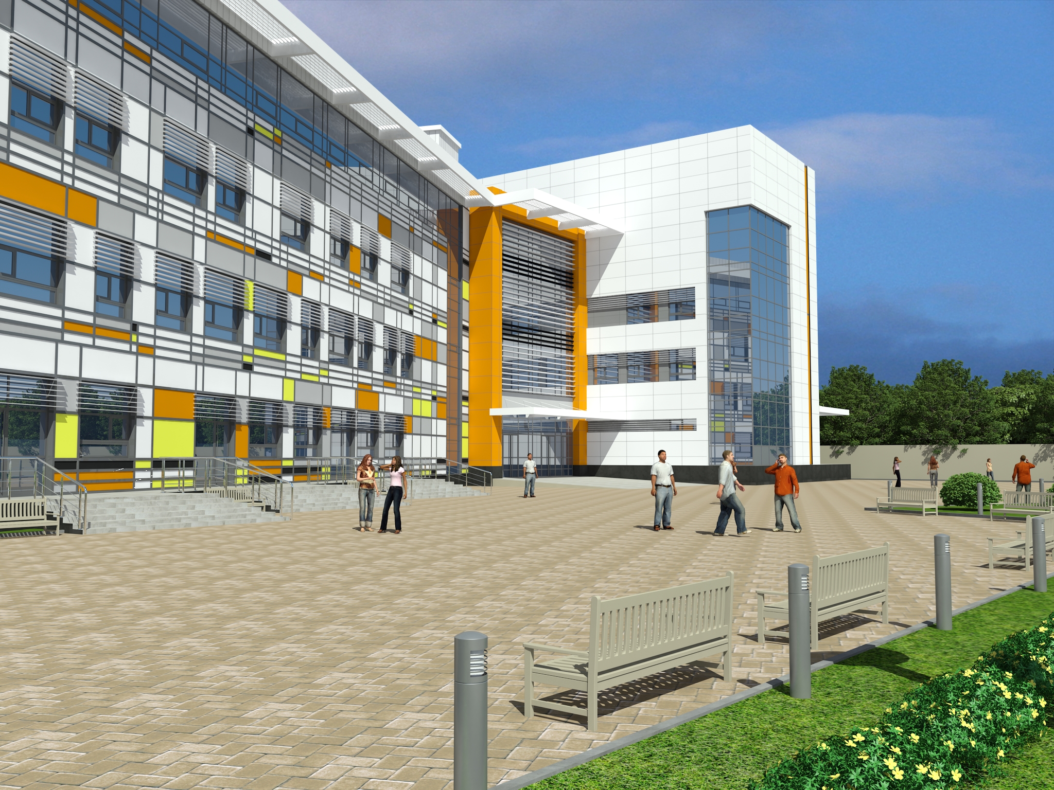 Основным материалом отделки фасадов принят Эмалит как наиболее удачно сочетающие хорошие технические характеристики (безопасность, устойчивость к агрессивному воздействию морского климата и прекрасные возможности для создания яркого образа здания).