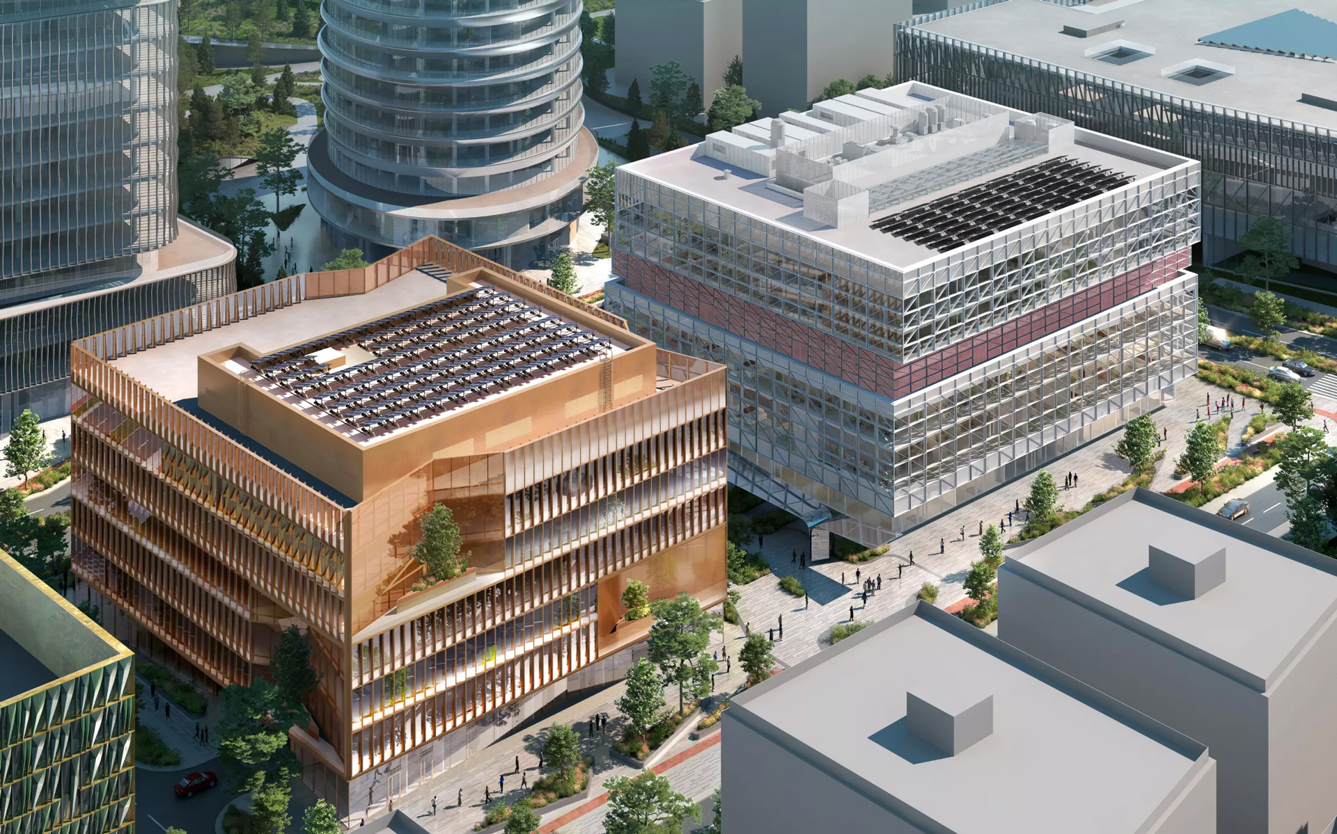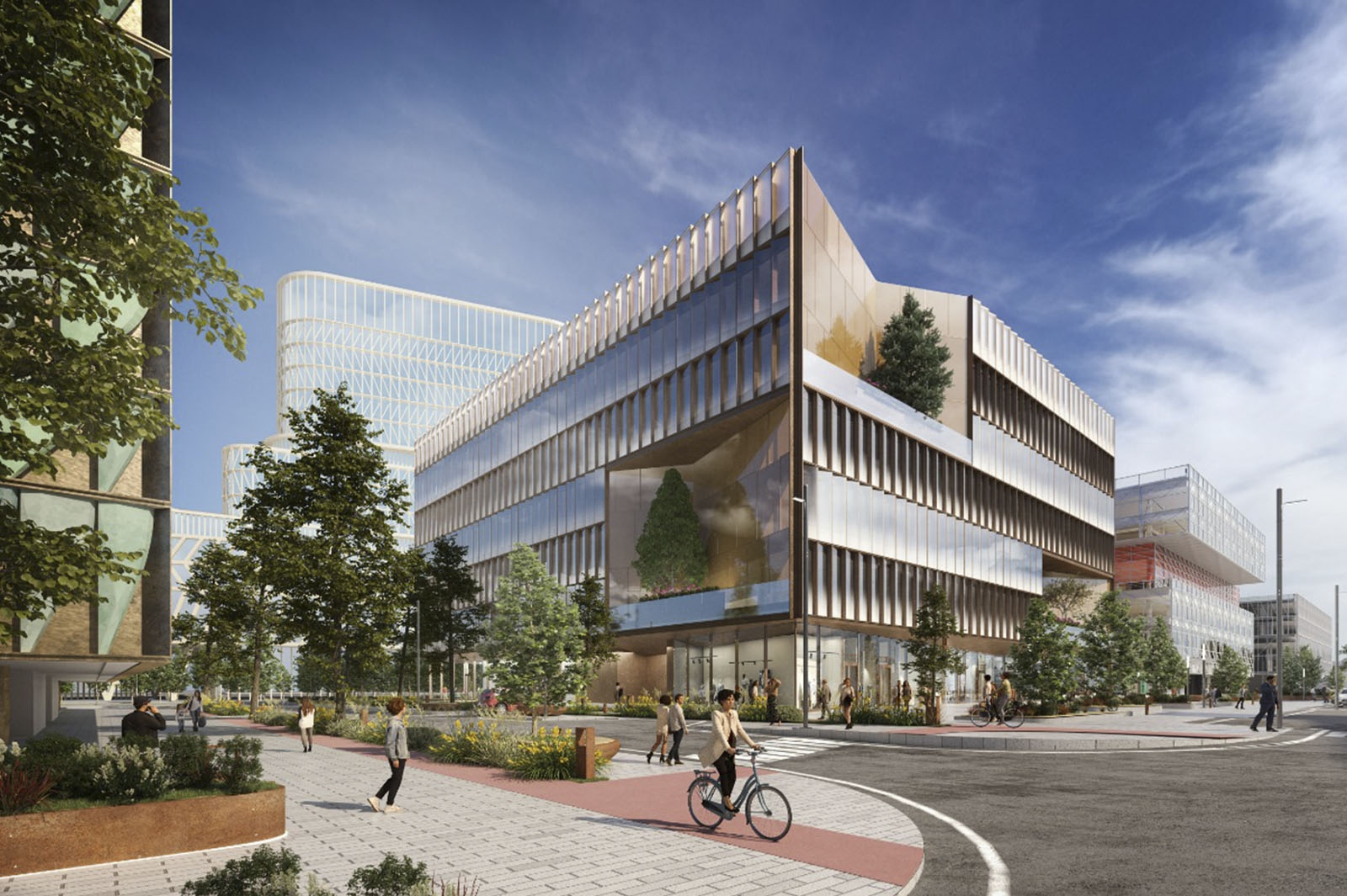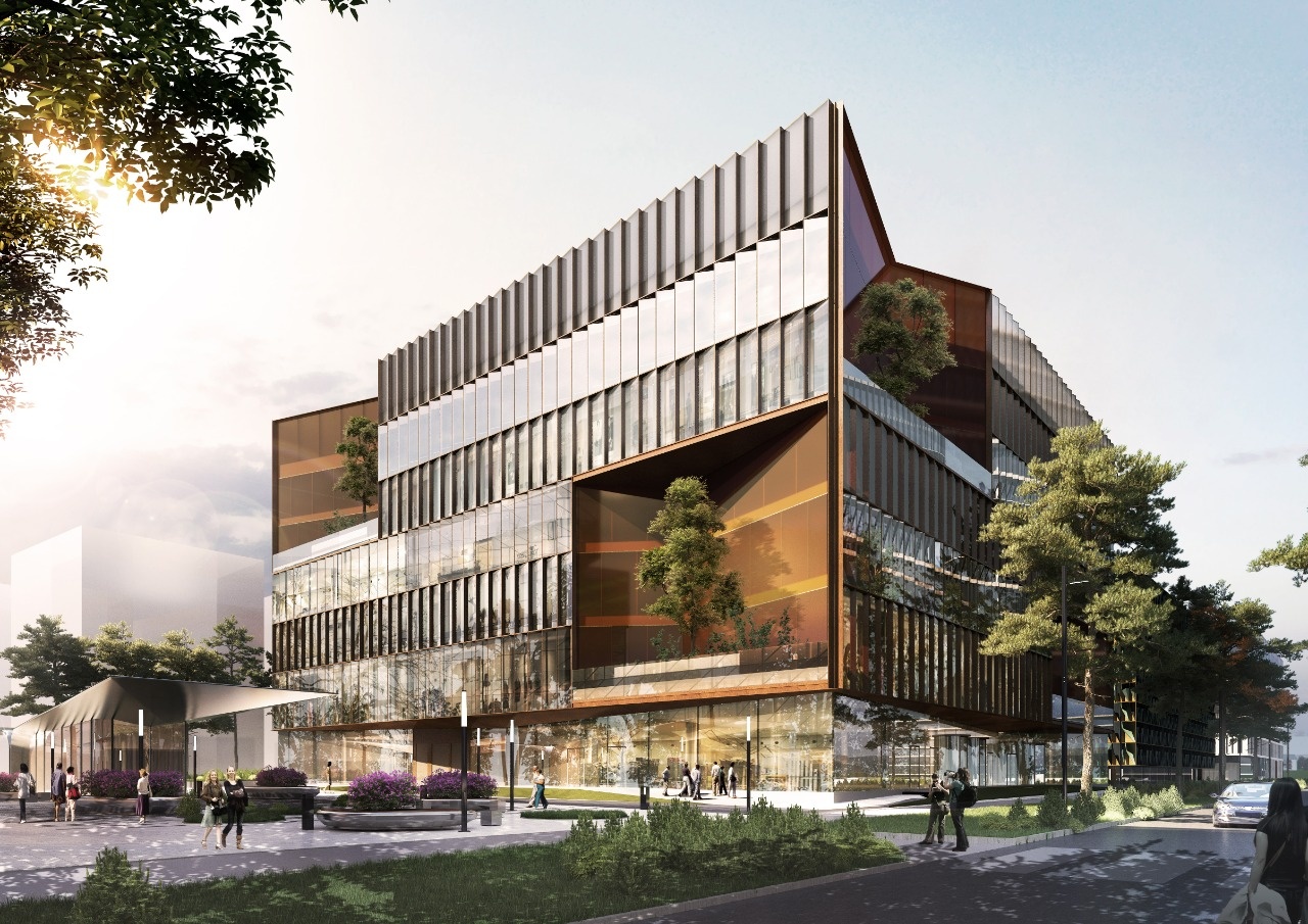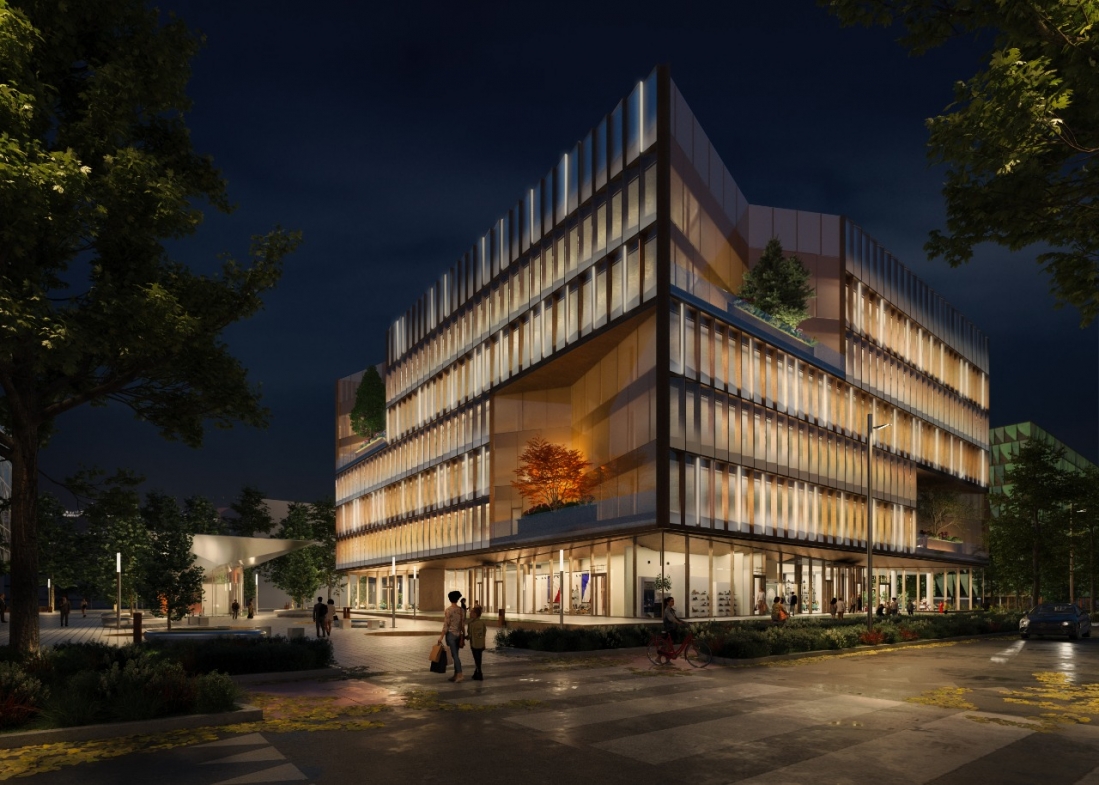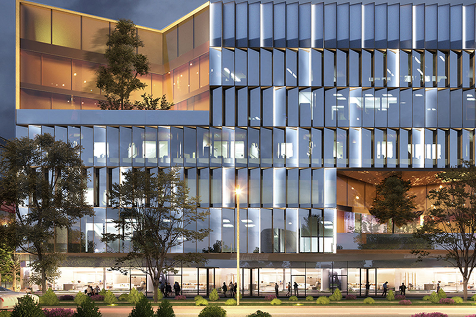 Архитектурно-художественные решения представлены в первую очередь оригинальным исполнением фасадов. Фасады здания остекленные. Фасад 1-го этажа выполнен из стоечноригельных профилей из алюминия и стали, остекление - структурное. Остекление фасада – двухкамерный стеклопакет с энергосберегающим стеклом и многослойным стеклом. Остекление 1-го этажа прозрачное. Со 2-го по 6-ой этажи, фасады здания выполнены из модулей, состоящих из многокамерных алюминиевых профилей, c диагонально расположенным стеклопакетом, благодаря чему фасад в плане имеет вид “пилы”. Положение стеклопакета в плане зеркально изменяется через этаж. Плоскость стеклопакета развёрнута относительно плоскости фасада. Стекло прозрачное, импосты массивные золотого оттенка. На уровне 2-го и 5-го этажа на фасадах расположены террасы. В местах расположения террас, фасад выполнен из стоечно-ригельных алюминиевых профилей, остекление - структурное. Архитектура фасада в плане представляет собой угол, вершина которого находится внутри здания относительно основной плоскости фасада. Остекление фасада – двухкамерный стеклопакет с энергосберегающим стеклом и многослойным стеклом, одно из стёкол имеет теплого янтарного оттенок. На террасах на всю высоту ниши располагаются крупномерные деревья в кадках.