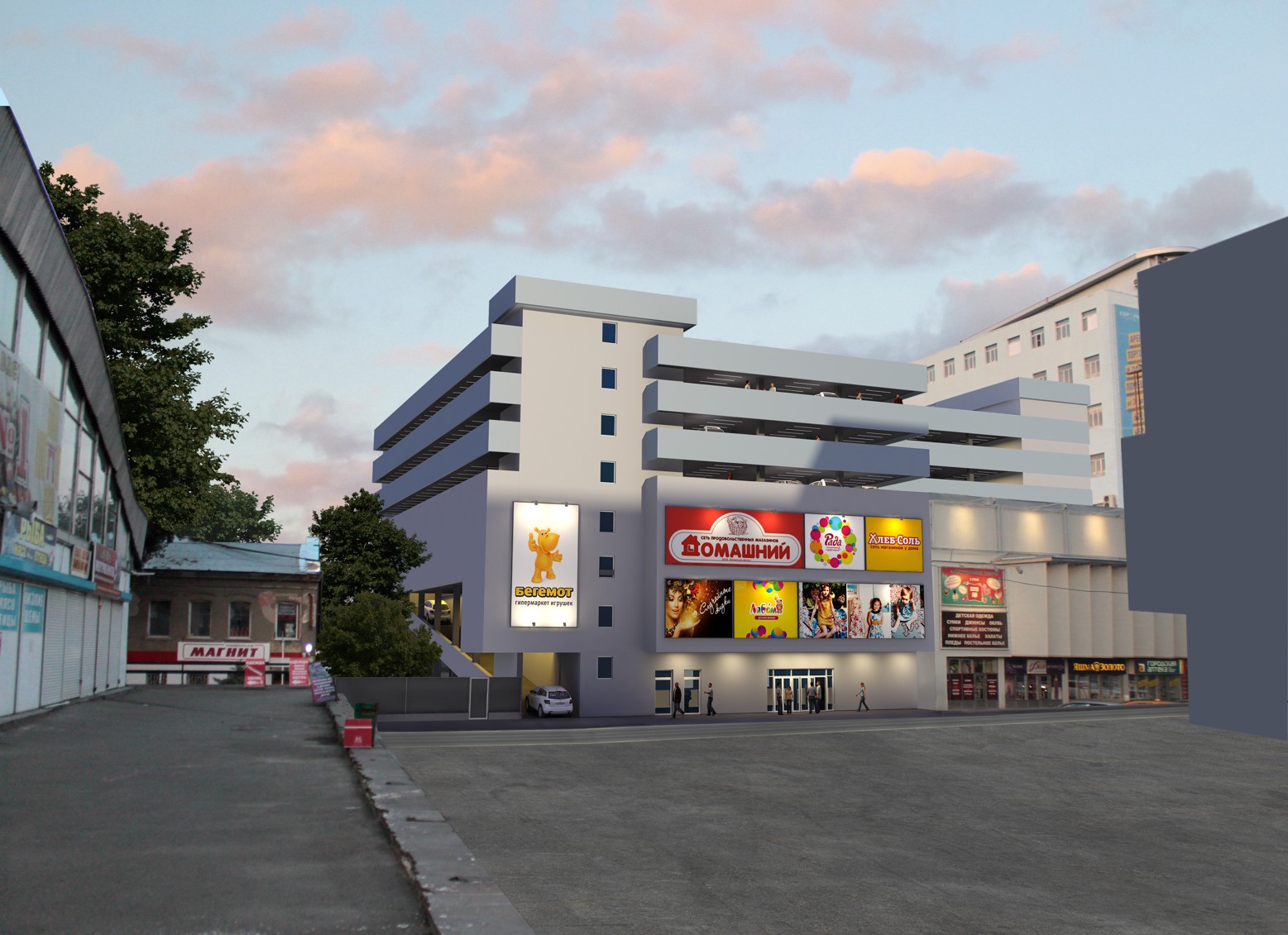 Торговые площади строящегося объекта расположены на первом и втором этажах. Высота первого и второго этажей – 4,2 м, подвального этажа – 4,1 м. В подвале расположены технические помещения, выставочный зал, а также торговое помещение площадью 61 м2.