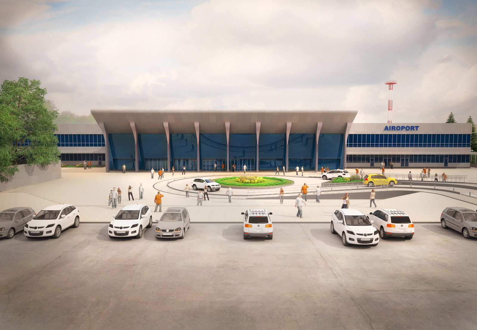 В качестве основного элемента наружной отделки в проектной документации принята система вентилируемого фасада, с заполнением из композитных панелей серебристого и синего цвета «Gold Star Panel». В качестве светопрозрачных элементов используется система алюминиевых витражей. На глухих участках в зале ожидания применены вертикальные листы стекла на спайдерах «King Lon» (Такие же, как в основном здании аэровокзала). Цоколь облицован керамическим гранитом.